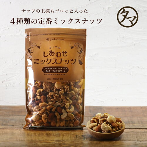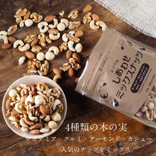 よっつのしあわせミックスナッツ300gアーモンド カシューナッツ クルミ マカデミアナッツ4種類 ミックスナッツ|無塩 無油 ミックス ナッツ オメガ3脂肪酸 無添加