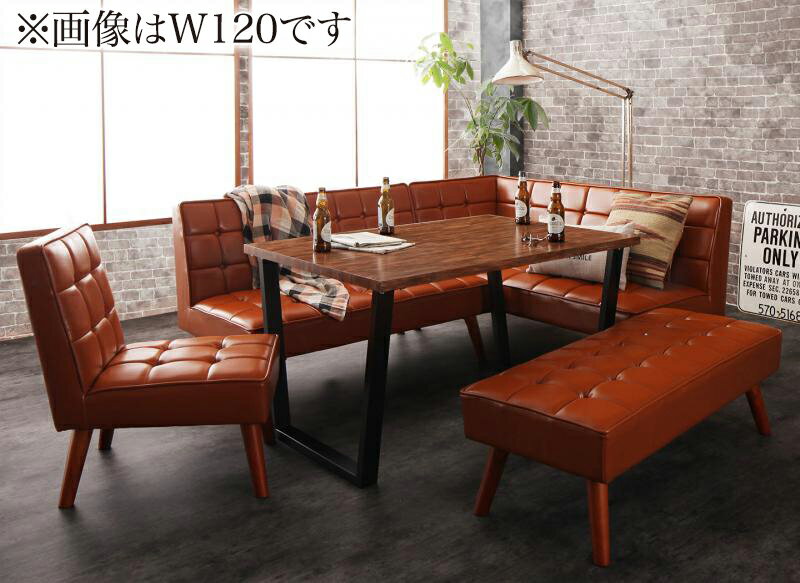 アメリカンヴィンテージ リビングダイニングセット Monica モニカ 4点セット(テーブル+ソファ1脚+アームソファ1脚+ベンチ1脚) 右アーム W120 ダイニング4点セット 4点ベンチセット